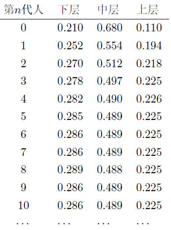 什么意思?其实我最早看马氏链的时候,觉得马氏链收敛定律的思想是好理解的,但是一直不是很明白这和采样有什么关系。我们还是用之前的社会阶层的例子来说明这个问题。
