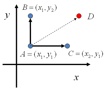 由此可以发现,在 $x=x_1$ 这条平行于y轴的直线上,如果使用条件分布 $p(y|x_1)$做为任何两个点之间的转移概率,那么任何两个点之间的转移满足细致平稳条件。同样的,如果我们在 $y=y_1$ 这条直线上任意取两个点$$A(x_1,y_1),C(x_2,y_1)$$,有如下等式
