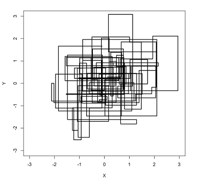 在上面的过程中,马氏链的转移就是沿着坐标轴并且轮换坐标轴转换的。这里每一个时刻最开始是x,或者y都是可以的,轮换知识一种方便的形式。最终便利整个概率分布空间,不同的区域密度反映了分布的概率密度。