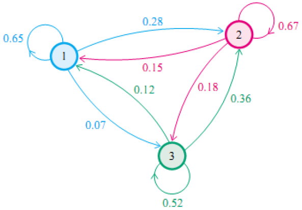 当n足够大的时候,P^n的每一行都会收敛于分布$\pi=[0.286,0.489,0.225]$。这并不是这个过程特有的,这里我们引入一个非常重要的定理。